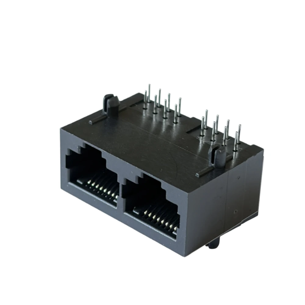 In modern electronic design, optimizing board space without sacrificing functionality is a top priority. The 1×2 Port RJ45 8P8C 90-Degree Modular Jack by Pran Electronics Pvt. Ltd. is a precision-engineered “Ganged” connector that integrates two independent Ethernet ports into a single, unshielded housing.