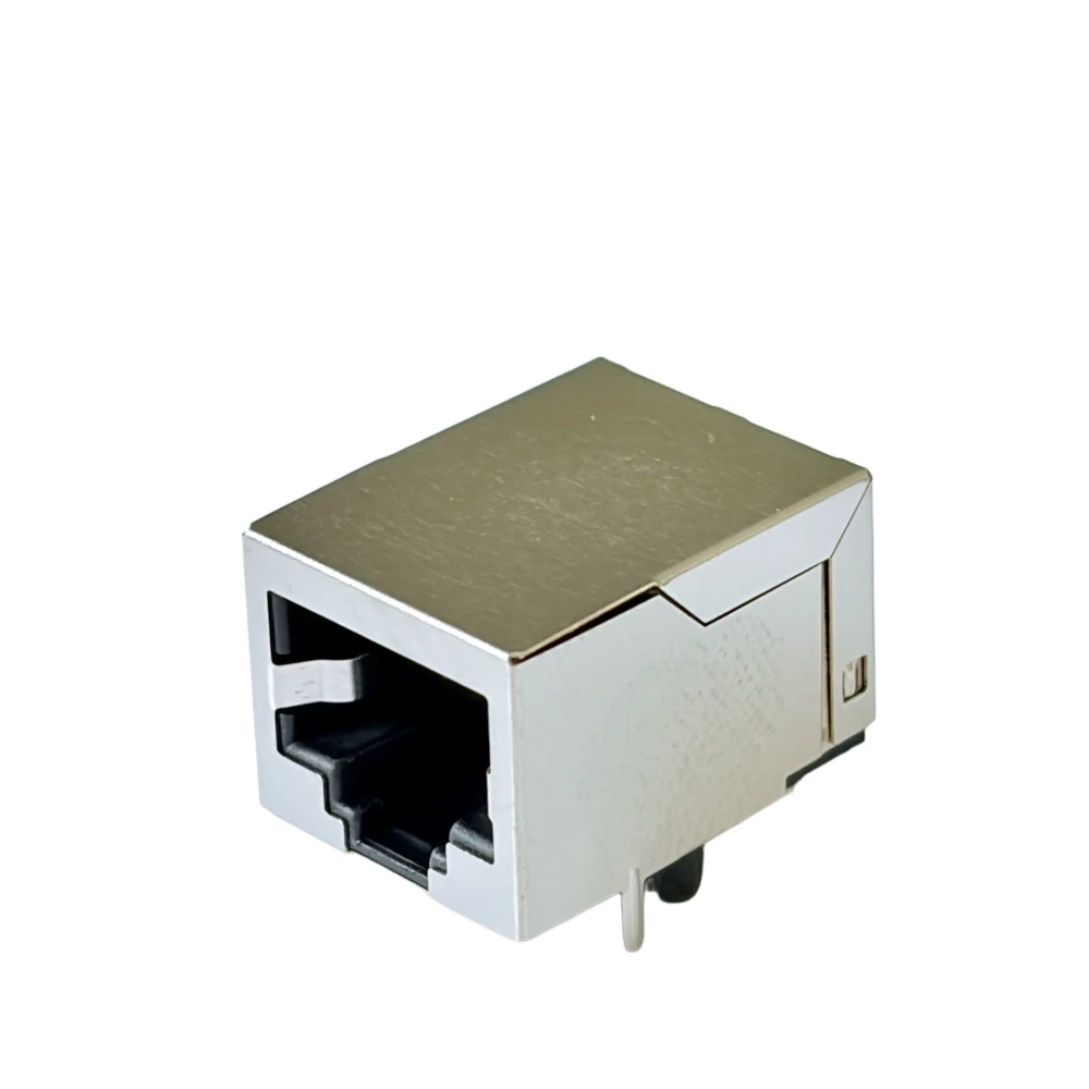Featuring a robust metal shield and a specialized F4.57mm front tab, this connector is designed for high-speed Ethernet applications that require superior grounding and protection against Electromagnetic Interference (EMI).